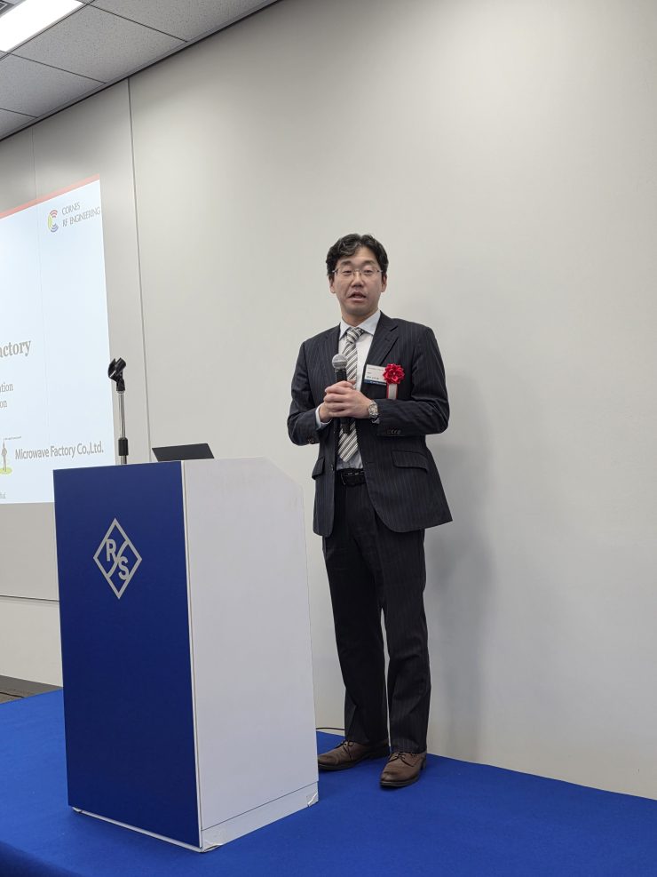 中西氏は,同社が取り組んでいる特定の電磁波測定分野について説明し,ローデ・シュワルツとの技術的な関わりを示した.