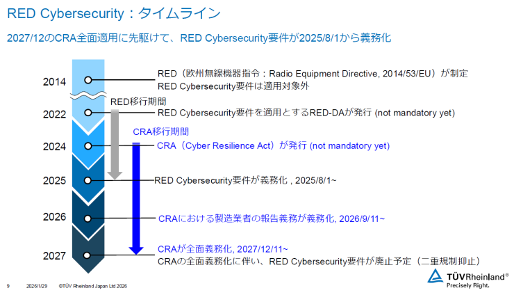 ただし,2027年12月に次項のCRAが全面適用されるのに伴い,REDのサイバーセキュリティ委任規則は廃止予定であり,規制はCRAへ一本化される.