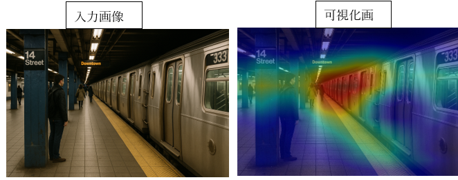 ・赤や明るい部分:モデルが,そのシーンを判断するうえで重要と考えている領域