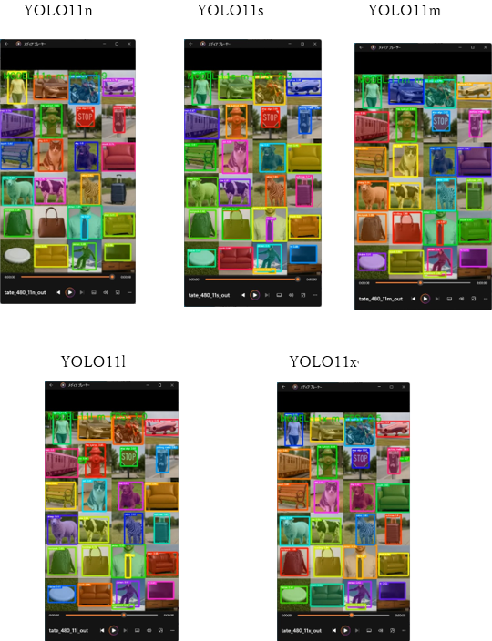 今回は,前回紹介した静止画のオブジェクト検出のモデル比較(https://interface.cqpub.co.jp/ailia015/)に続き,YOLO11-segがサポートする複数のモデルを用いて,動画入力におけるオブジェクト検出性能を比較します.主な評価項目としては,各モデルの検出結果(検出精度)と,処理速度(FPSなど)の違いについて検証しました.