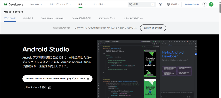 ウェブ・サイト(https://developer.android.com/studio?hl=ja)からダウンロードできます(図1).