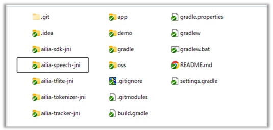 クローンが完了したら,リポジトリ内にailia-sdk-jniやailia-speech-jniなどのサブモジュールが正しく取得されているかを確認します.