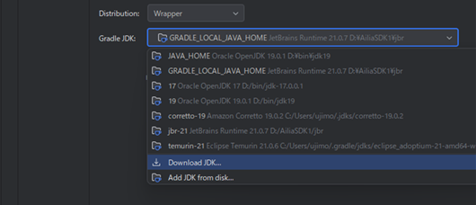 ・2,画面右側にある「Gradle JDK」のドロップ・ダウン・メニューを開き,「Download JDK…」を選択する(図7)