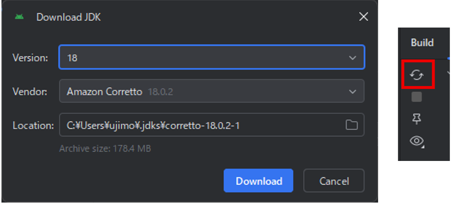 図8 JDK選択メニューとビルドアイコン
