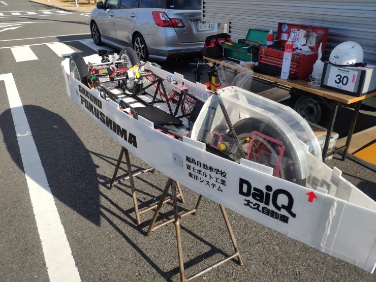 学法福島校の車両は,自作の鉄フレームとプラダンのカウルで構成されています.