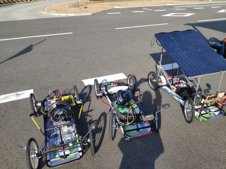 CQ EVミニ・カートを使った小高産業技術校の3台.うち1台はソーラパネルを搭載している