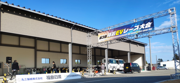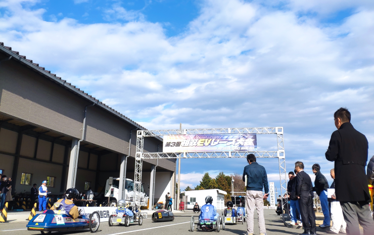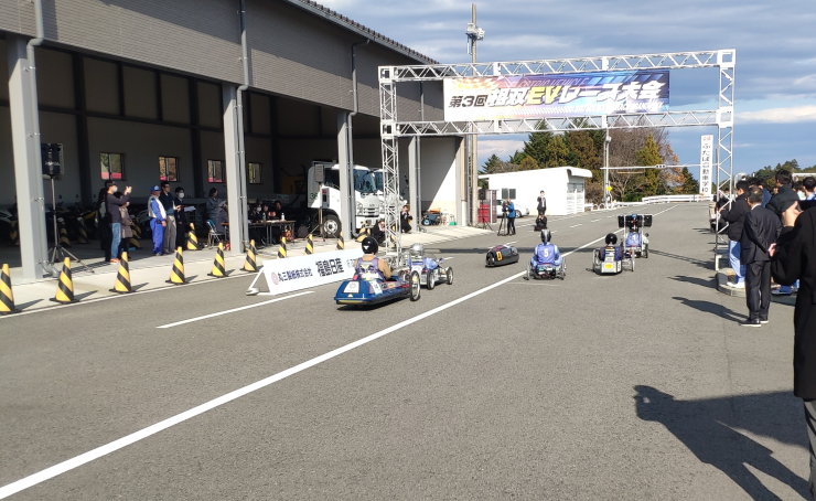 福島県立小高産業技術高等学校が主催した相双EVレースが,2025年12月8日(月) ふたば自動車学校で行われました.