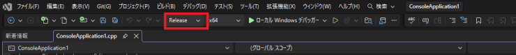 次に,画面上部の[Debug]となっている欄を[Release]に変更してください.